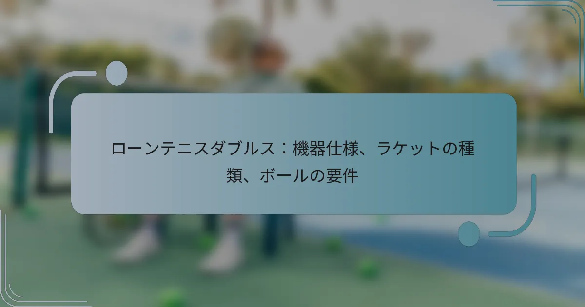 ローンテニスのダブルスにおける機器仕様には、特定のコートの寸法、ネットの高さ、推奨されるラケットとボールの種類が含まれます。これらの要素を理解することは、最適なパフォーマンスと競技規則の遵守にとって重要です。