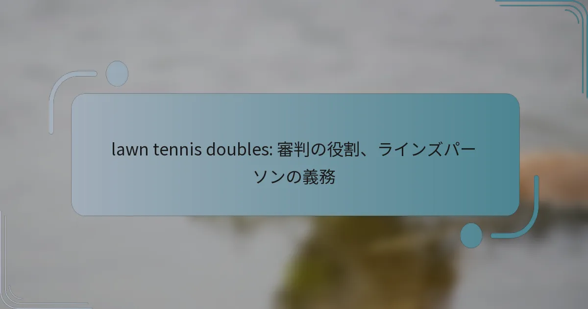 ラインズパーソンは、コート上で正確なコールを行い、公正なプレーとルールの遵守を確保することで、ローンテニスのダブルスにおいて重要な役割を果たします。彼らの責任には、ラインの監視、フォルトのコール、試合の誠実さを維持するための審判のサポートが含まれます。