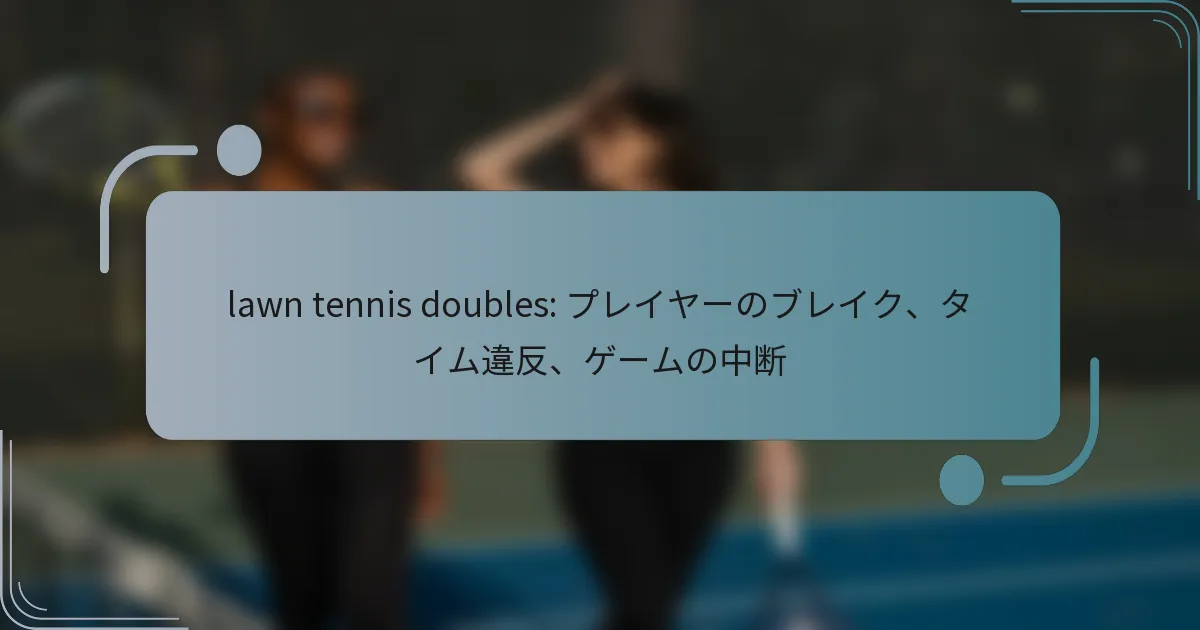 ローンテニスのダブルスでは、選手の休憩、時間違反、ゲームの中断に関する特定の規則があり、公正でスムーズなプレイ体験を確保しています。選手の休憩は、医療上の理由やセットの移行中に発生することがありますが、時間違反は選手がサーブやリターンの時間を超えた場合に発生します。確立されたプロトコルがゲームの中断を管理し、プレイが再開される際の一貫性と公正を確保します。