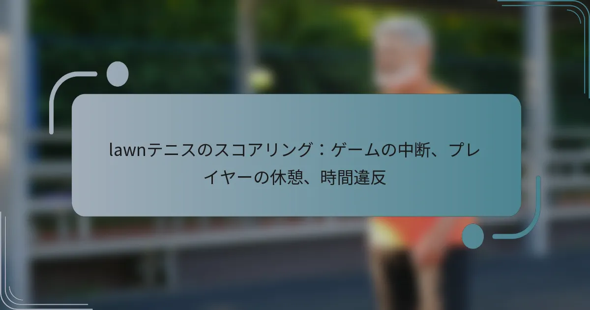 芝生テニスのスコアリングには、試合の流れを妨げるさまざまな要素が含まれます。これには、ゲームの中断、選手の休憩、時間違反が含まれます。ゲームの中断は、天候や怪我などの要因によって引き起こされることがあります。一方、選手の休憩は、必要な休息や医療処置を受けるためのものです。さらに、時間違反は、選手がポイント間の割り当てられた時間を超えた場合に発生し、パフォーマンスや試合全体のダイナミクスに影響を与える可能性があります。これらの側面を理解することは、ゲームの整合性を維持するために重要です。
