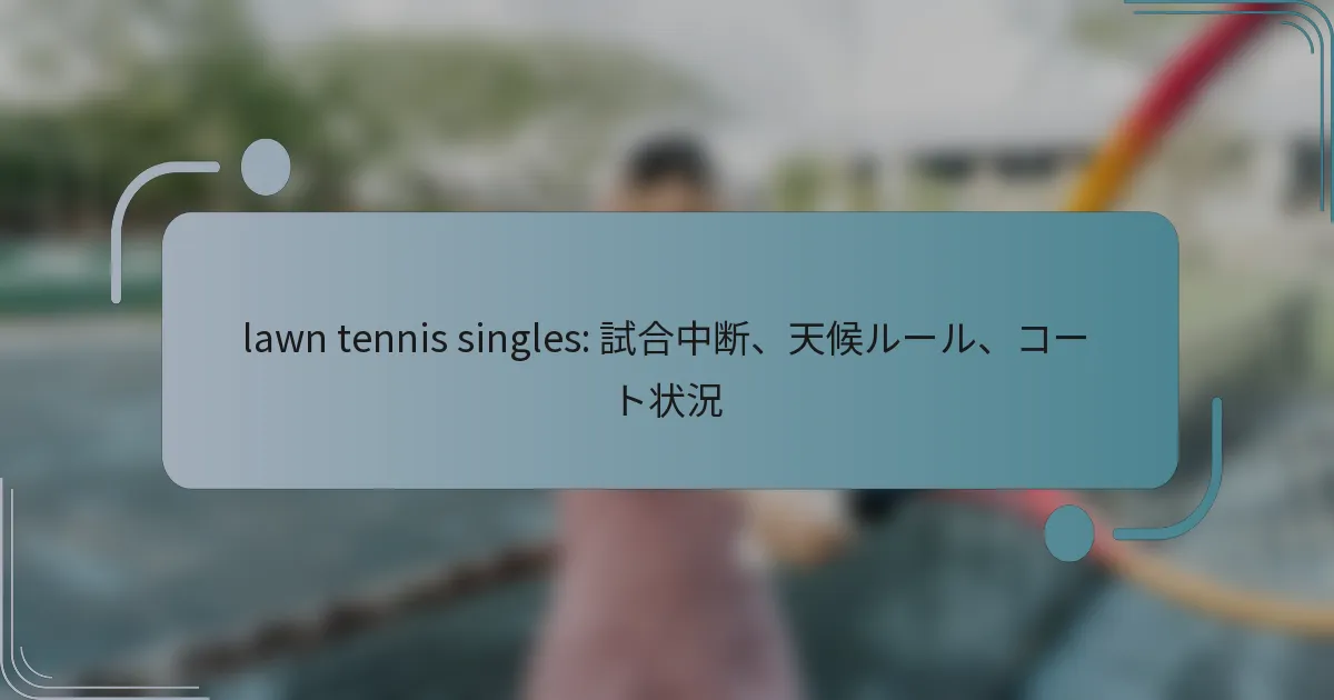 芝生テニスのシングルスの試合は、悪天候や選手の怪我など、さまざまな理由で中断されることがあります。これらの中断を規定するルールを理解することは、選手と観客の両方にとって重要です。なぜなら、それが試合の再開方法やタイミングを決定するからです。雨、風、極端な気温などの天候要因は、試合のスケジュールや選手のパフォーマンスに大きな影響を与える可能性があり、コートの状態もゲームプレイや結果に影響を与える重要な要素です。