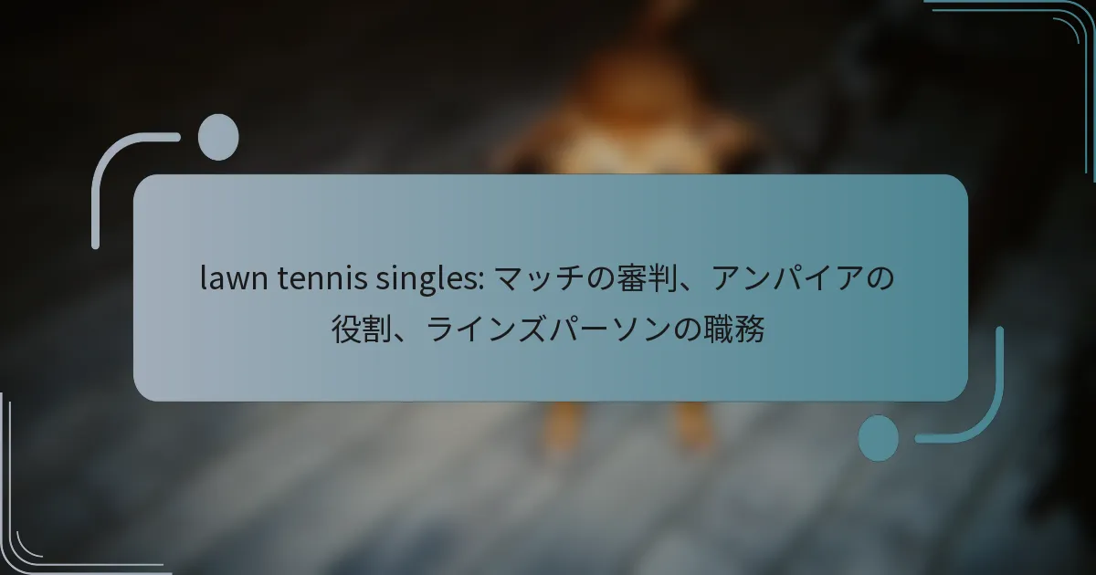 ラインズパーソンは、ボールの位置に関する正確なコールを確保し、試合の流れを維持することで、芝生テニスのシングルスの試合の審判において重要な役割を果たします。彼らの責任には、コートの監視、決定の合図、審判との効果的なコミュニケーションが含まれ、試合の誠実さを守ります。