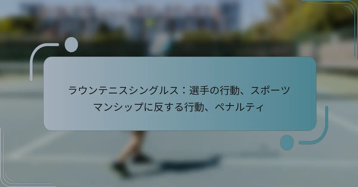 草地テニスにおける非スポーツマンらしい行動は、選手のパフォーマンスや評判に影響を与えるさまざまな罰則を引き起こす可能性があります。これらの罰則は、試合中の公正なプレーとスポーツマンシップを維持するために設計されています。
